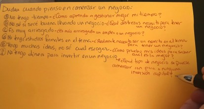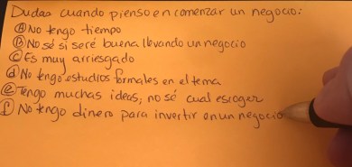 - Cuando me planteo la idea de comenzar mi propio negocio, ¿qué dudas o preocupaciones llegan a mi mente? Enumera tus respuestas. Aquí un ejemplo: